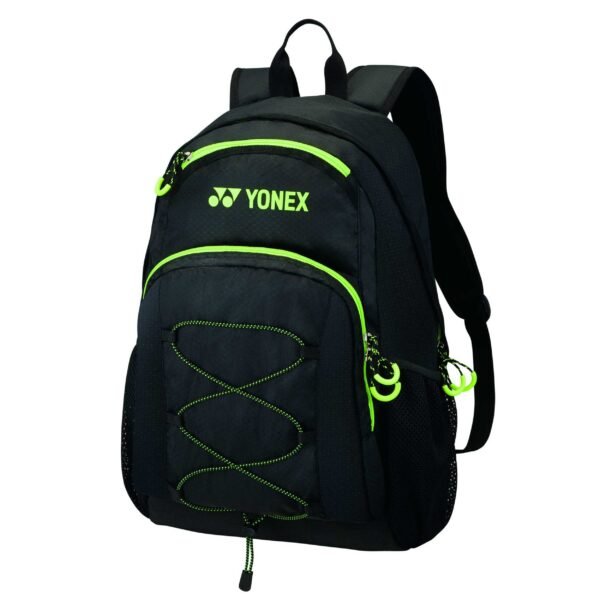 The Yonex 4512 backpack is perfect for training. It is roomy and comfortable. The Yonex 4512 has one large storage compartment, two small pockets on the front and two mesh pockets on the sides. The backpack is made in black with lemon inserts and the Yonex logo on the front.