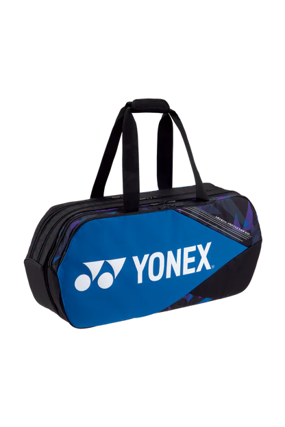 YONEX Pro Tournament Bag by Yonex has been made from polyester and has a size dimension of 34 x 22 x 48 cm. A water-resistant compartment has been added to separate wet and dry clothes from the rest of your gear. The easily accessible storage compartment helps in storing extra grips, sweat bands and other accessories.